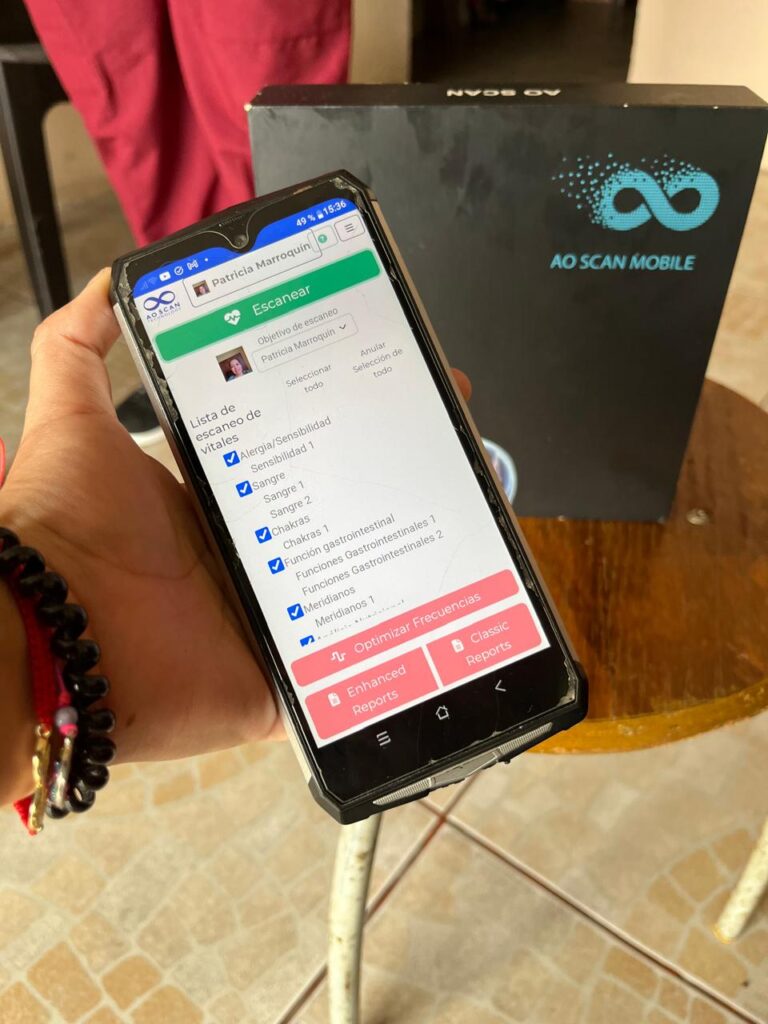 El AO Scan Digital Body Analyzer es una tecnología avanzada de bioresonancia que analiza tu cuerpo a través de frecuencias y emite vibraciones correctivas para restaurar el equilibrio. Lo mejor es que puedes vivir esta experiencia de forma presencial en nuestro spa o también a distancia, desde cualquier lugar del mundo.